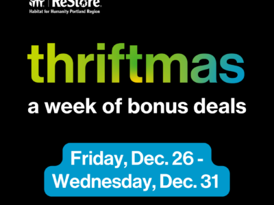 Get startedThe Habitat for Humanity Portland Region ReStores are home improvement stores and donation centers - open to the public - that sell new and gently used furniture, home decor, appliances, building materials and more at discounted prices. Proceeds generated from the ReStores support local Habitat for Humanity homebuilding and home repair programs.